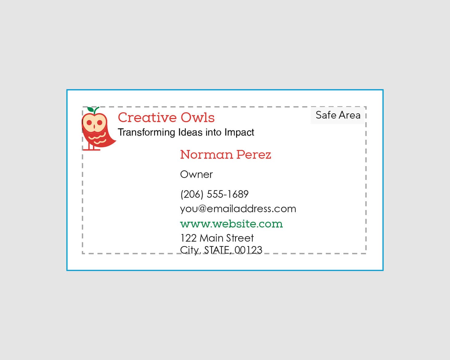 We’ll trim your business cards between the safe area and the bleed line.