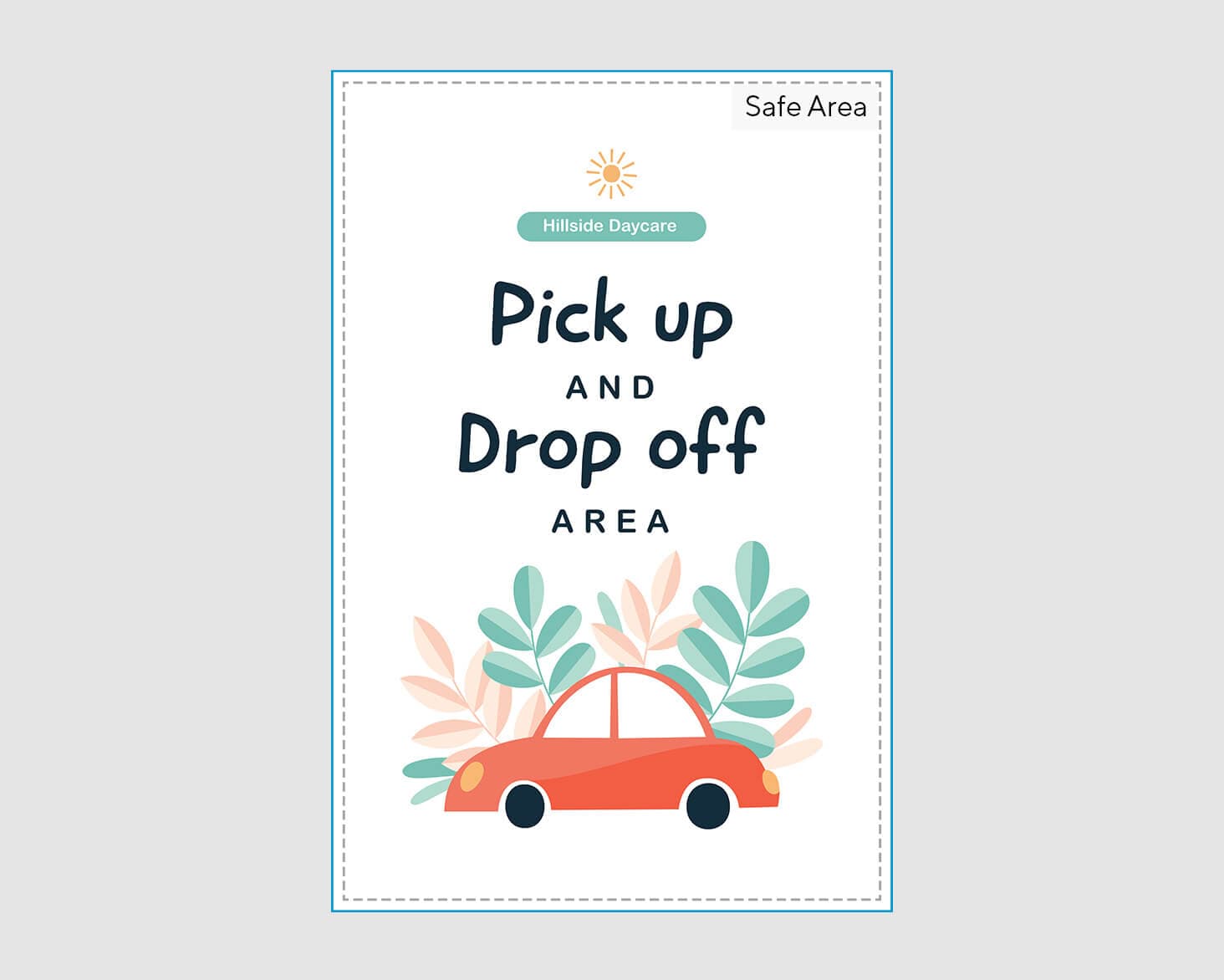 To avoid an unwanted white border, drag all background content to the edges of your template. We’ll trim your sign between the safe area and the bleed line.